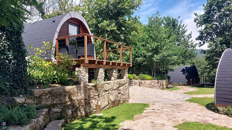 Green Paradise Glamping ist ein Ferienresort in paradiesischer Atmosphäre im Dorf Covas, eingebettet in üppige Vegetation am Ufer des Flusses Coura. Hier vereinen sich Ruhe und Glamour. Die Anlage besteht aus fünf komfortablen Bungalows und fünf Landhäusern mit TV, WLAN und vielem mehr. Zur Ausstattung gehören ein Salzwasserpool, ein Gemeinschafts-Whirlpool, eine Feuerstelle, ein Grill und private Parkplätze. Das Resort besticht durch seine exklusive Gestaltung. In der Umgebung finden Sie zahlreiche Sehenswürdigkeiten und hervorragende Restaurants. Spanien ist nur 20 Minuten entfernt. Reservierungen sind über Booking.com und Airbnb.com möglich. Willkommen im Paradies von Minho!