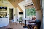 Détendez-vous complètement dans un lodge wellness luxueux et chaleureux pour 2 personnes. Dans ce lodge, vous profiterez du luxe de votre propre sauna et jacuzzi. Les lodges sont situés à la lisière de notre parc de vacances, ce qui vous garantit une intimité supplémentaire.
